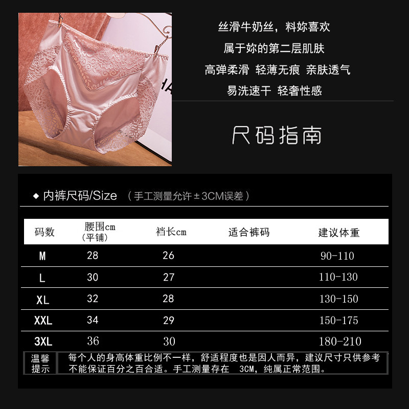 Milk silk underwear women's high waist ice silk seamless cotton crotch large size fat mm sexy lace summer thin triangle