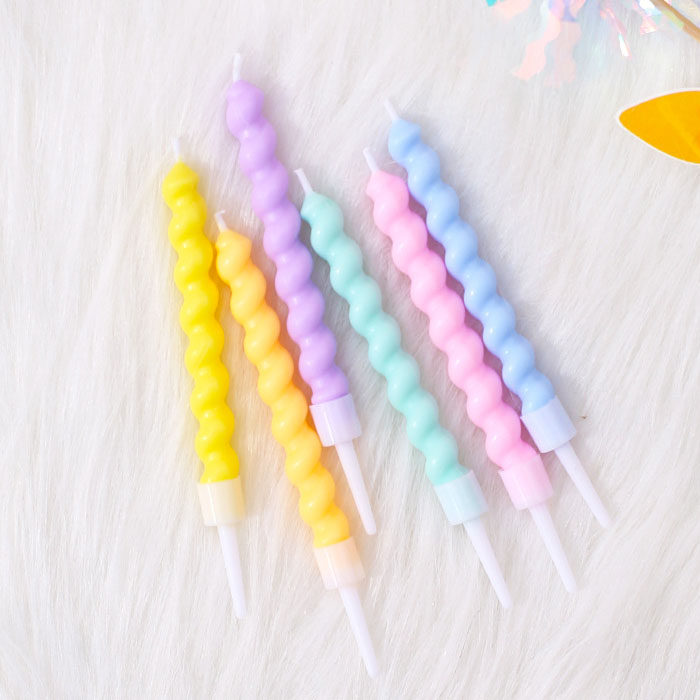 Twisted threaded birthday candle Macaron cute bending spiral candle mesh red cake baking decoration plugin