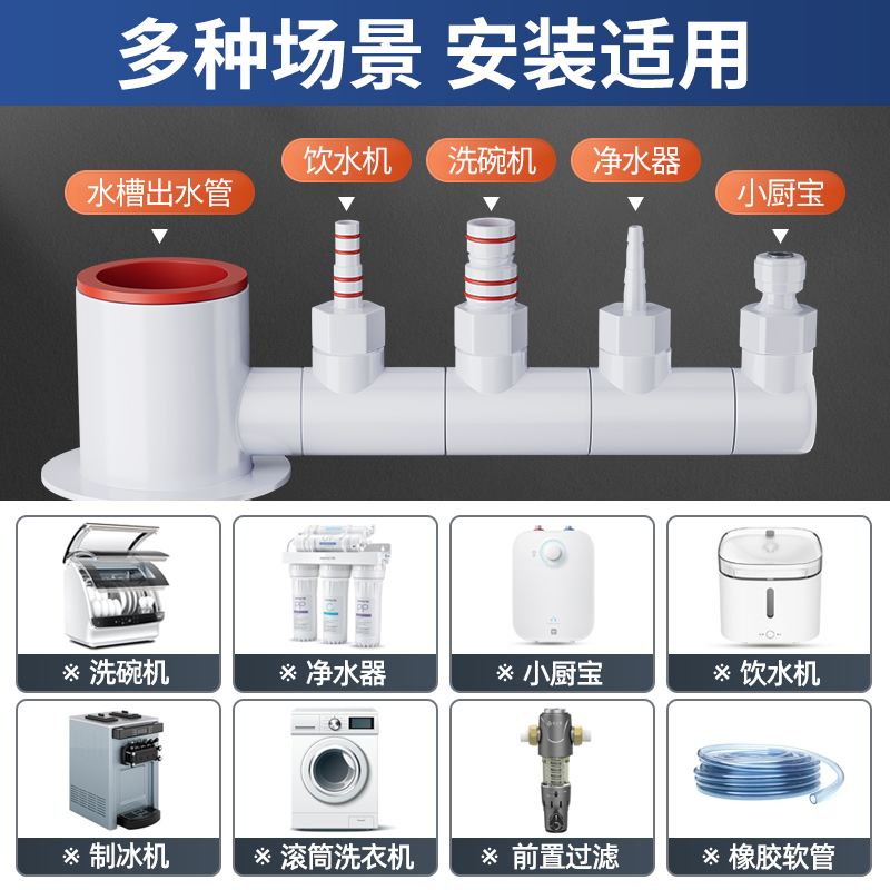 (Thickened deodorant type) Tee main body (Thickened deodorant type) Tee 2-point water purifier connector (Thickened deodorant type) Tee 6~8mm Pagoda (Thickened deodorant type) Three
