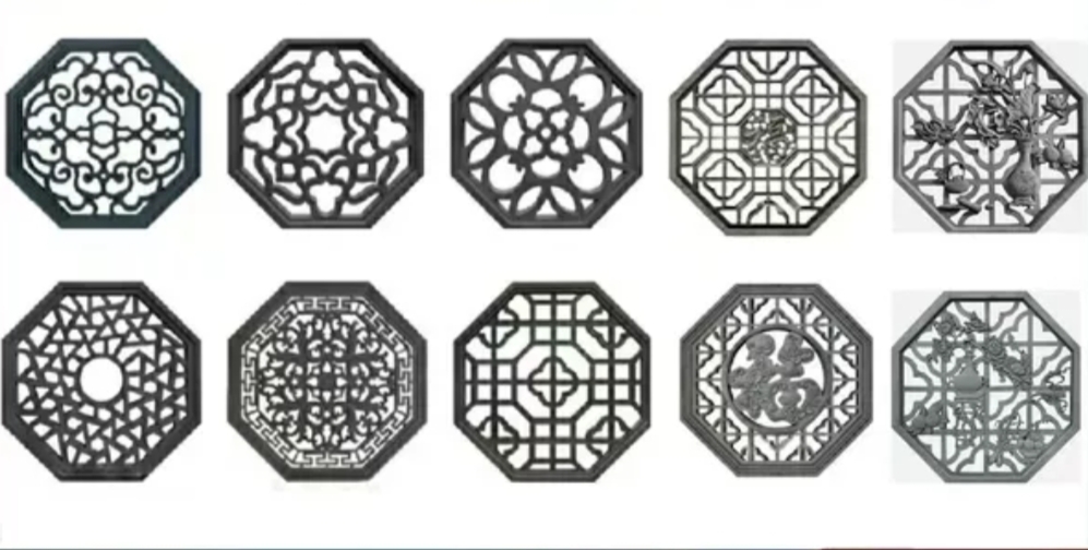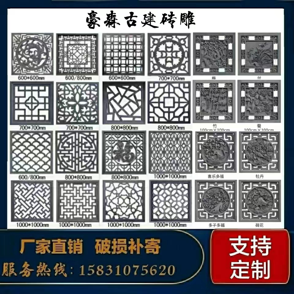 Antique brick engraving emblems with wall window flower Chinese round square hollowed-out flower window sector hollowed-out brick carved window brick engraving-Taobao