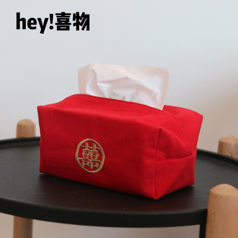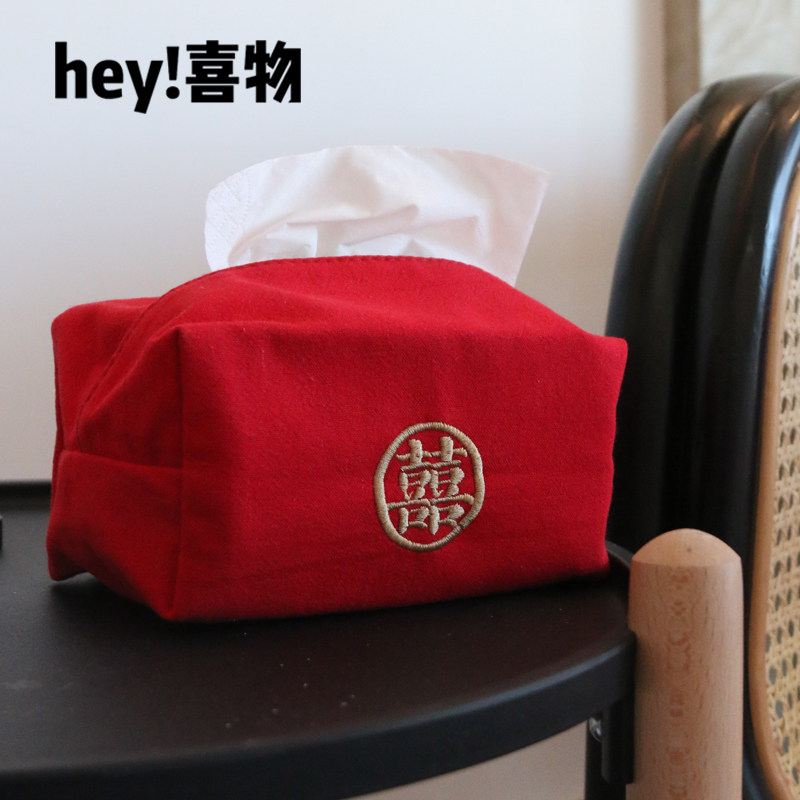 Cotton and linen embroidery tissue set box red double happiness wedding national tide Chinese wedding wedding room bedroom decoration decoration