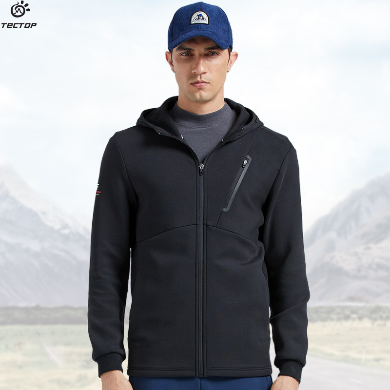 TECTOP explores outdoor spring and autumn men's knitted hooded jacket breathable cotton T men's sports and leisure