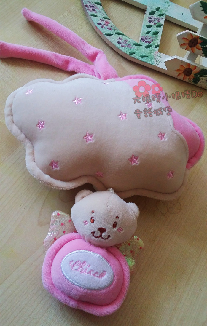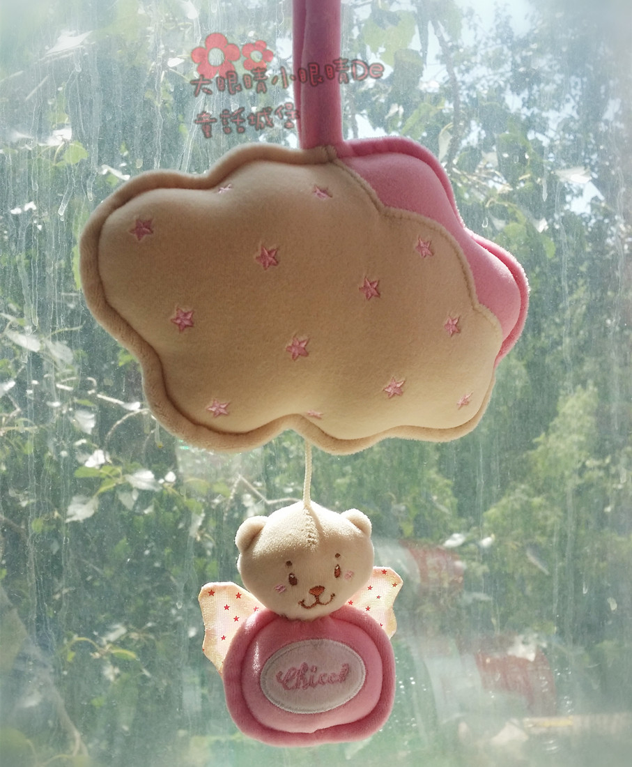 Italian Chicco chicco white clouds blossoming small pink bear bell bell bed bell crib hanging without battery
