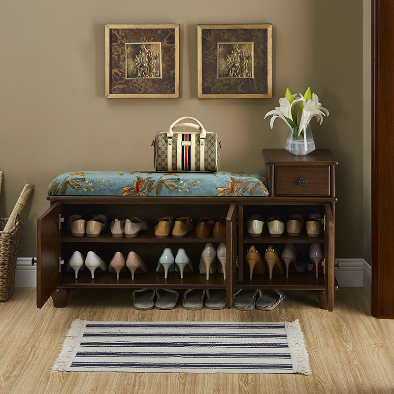 American solid wood changed shoe stool household doorway simple entry shoe cabinet European black walnut wearing shoe stool seat