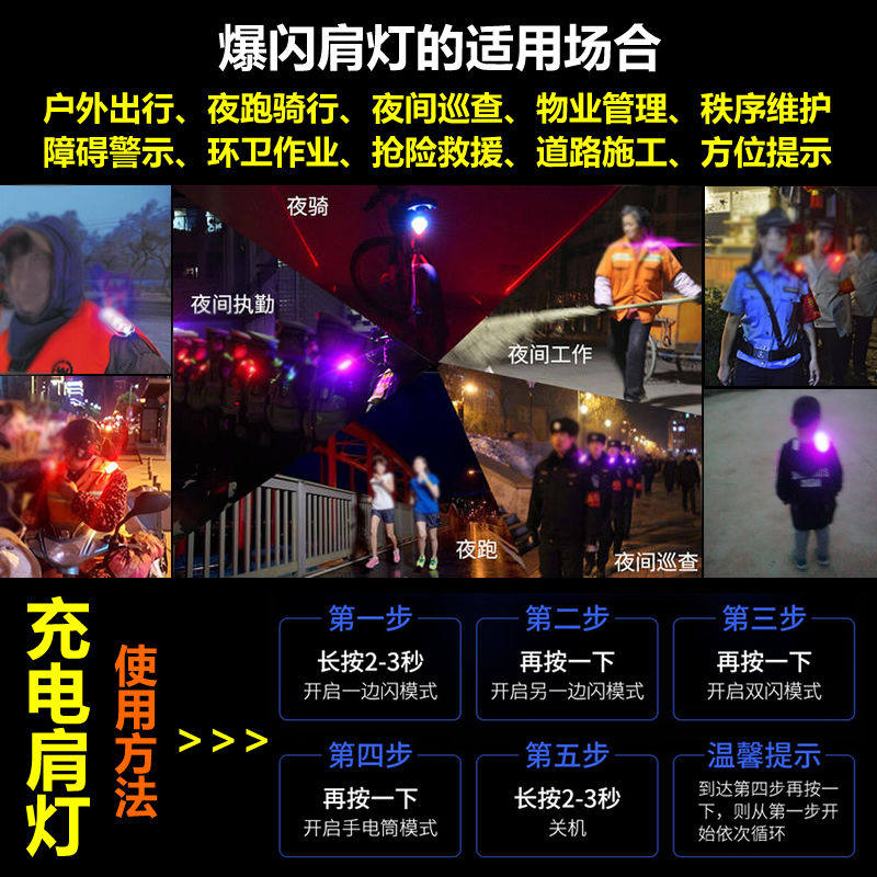 Security patrol shoulder flashing light LED shoulder clip flashing shoulder night warning light night running flash signal light charging model