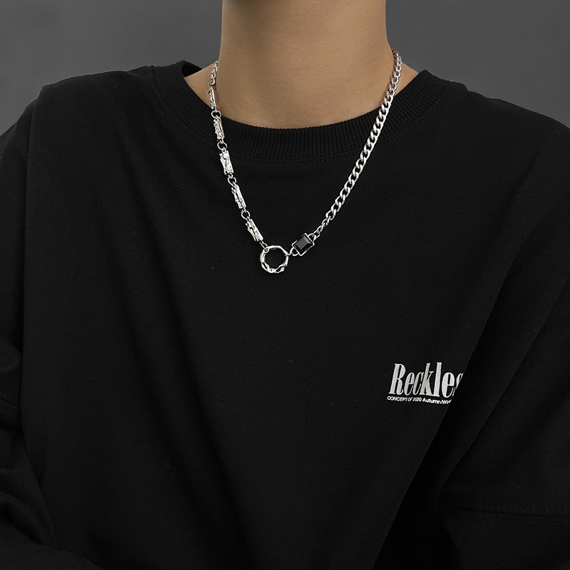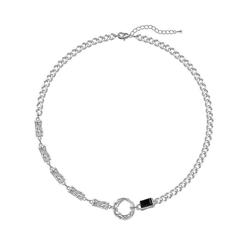 Pure silver irregular circular obsidian necklace male tide simple neutral cold wind high-sensing wind