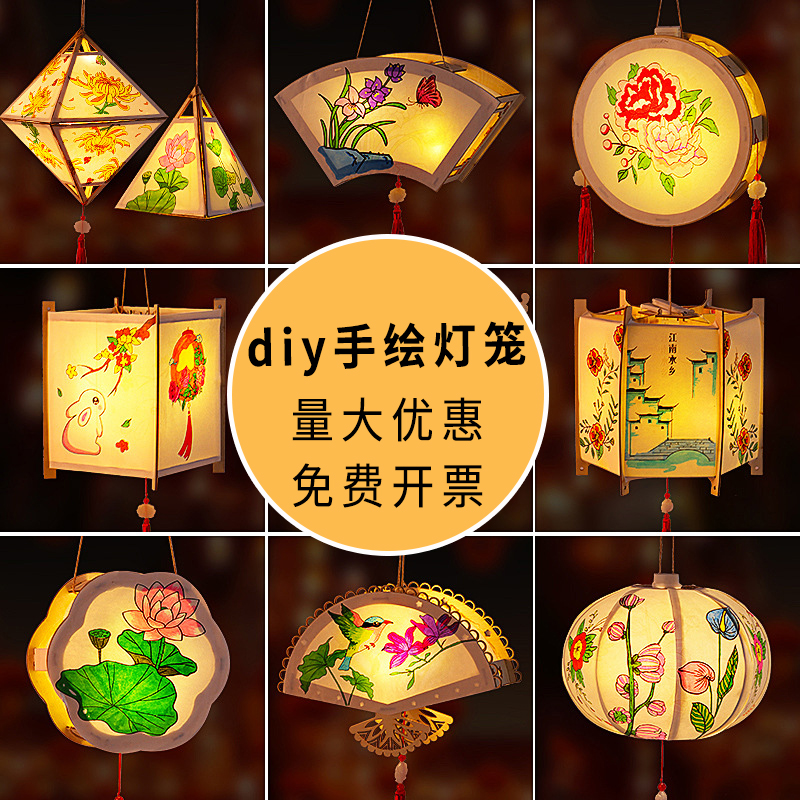 Children's hand-painted lanterns diy handmade materials decoration kindergarten activity palace lantern led luminous portable lantern
