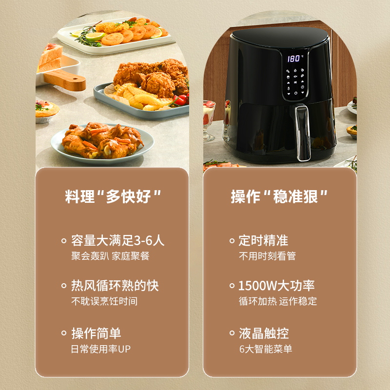 Yamamoto air fryer smart household high-power frying pan oil-free low-fat electric frying pan oven fries frying pan