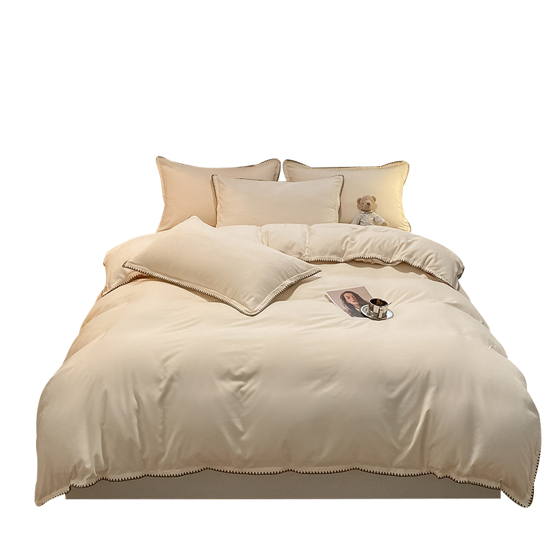 Embroidery lock four-piece bed set Nordic style solid color cotton washed cotton bed quilt cover student dormitory three-piece set