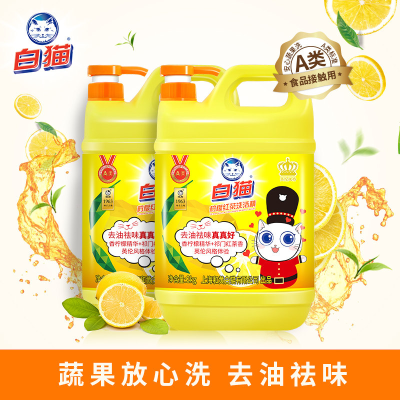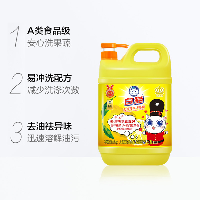 White cat dishwashing liquid 8 catties large barrel to remove oil stains washable fruit and vegetable home kitchen black tea fragrance family pack non-5 kg