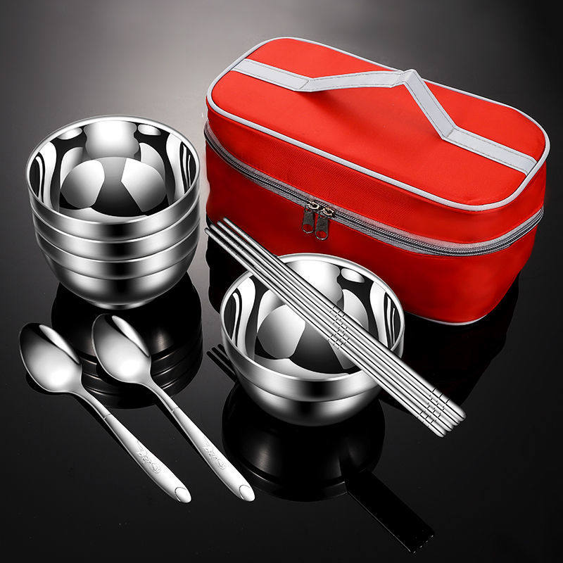 304 cutlery bowl cutlery bowl stainless steel portable camping picnic bag portable cutlery adult tableware travel set
