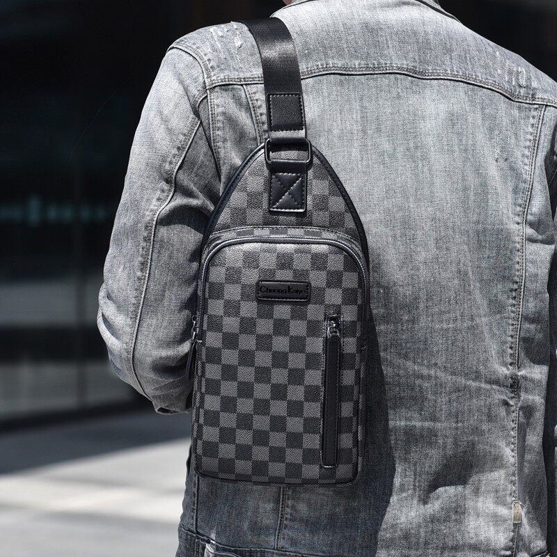 2022 new chest bag men's bag large-capacity one-shoulder messenger bag leather leisure light luxury tide brand small backpack men