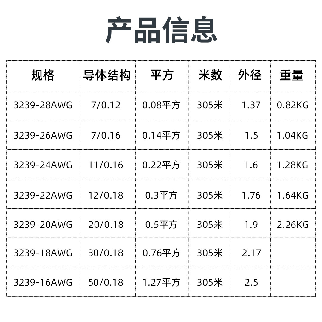 3239-28AWG (305 m) 3239-26AWG (305 m) 3239-24AWG (305 m) 3239-22AWG (3)