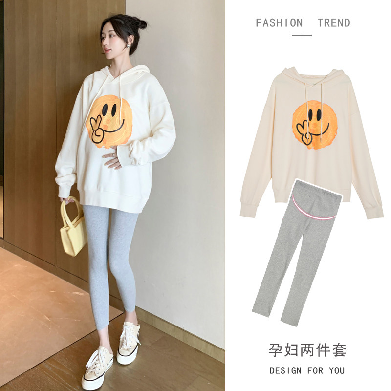 The Jing Qi Pregnant Women Suit Autumn Clothing Fashion Tandem Hat Sweatpants Bottom Pants Two Sets Of Damp Moms Pregnancy Dress Big Code Blouses-Taobao