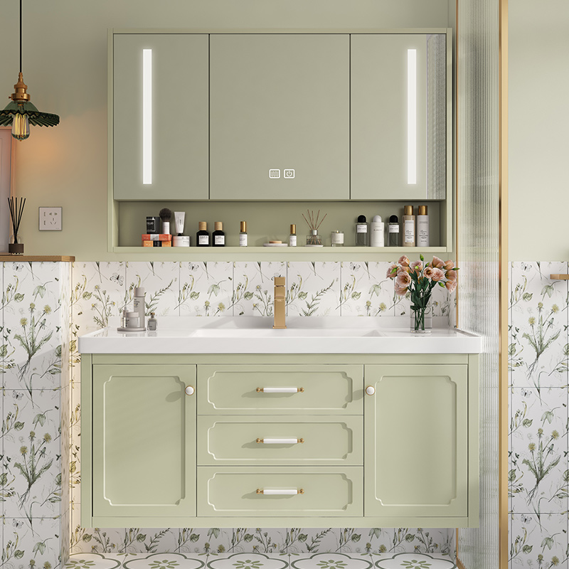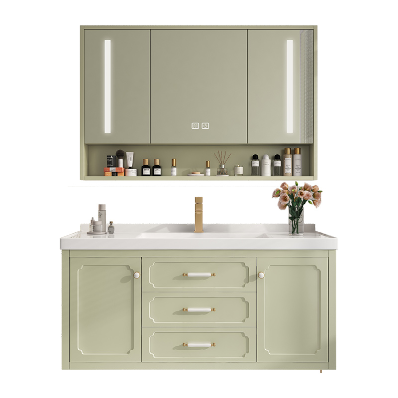 Consult customer service to enjoy Double Eleven event price Imported logs are placed for free installation with the same milky white 0 6m cream green gold frame round mirror combination ceramic basin 0 7m cream green gold frame round mirror combination ceramic