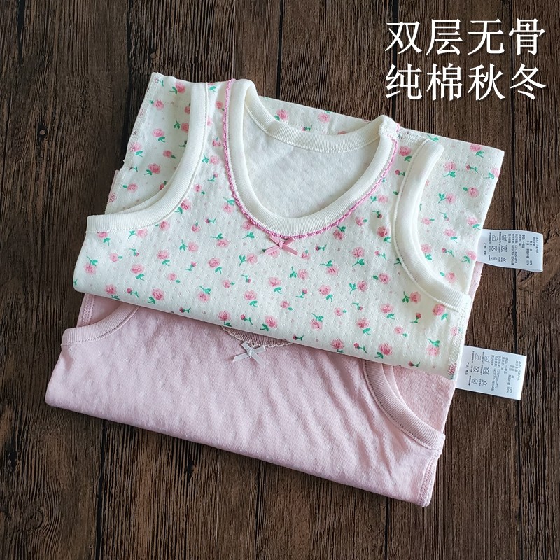Children's spring autumn winter pure cotton vest girl baby No bone A type of fluorescent warm double layer thick and soft hitting bottom-Taobao