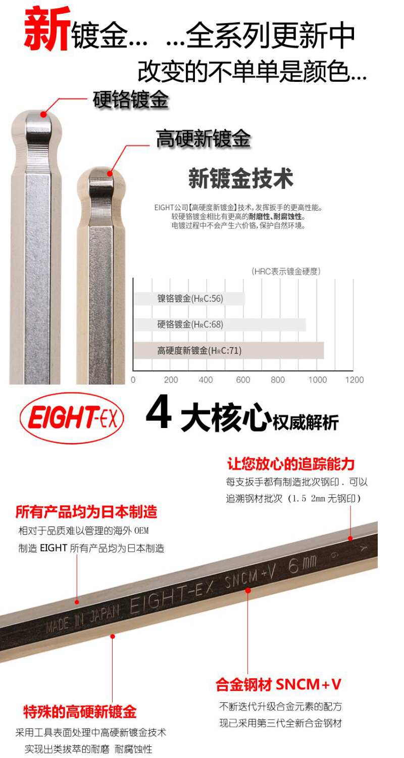 Japan EIGHT Bailey inner hexagon wrench imports BHS-9 8 ball head hexagonal key wrench TLS-7S 8 9 6-Taobao