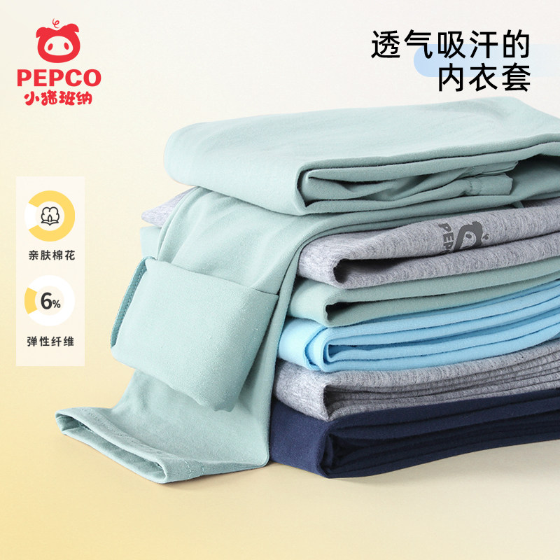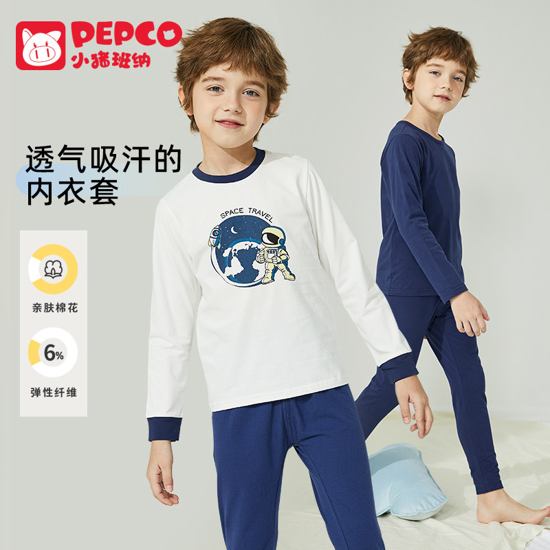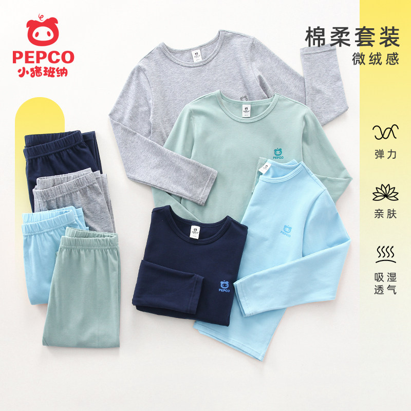 Piggy Banna Boy Warm Underwear Suit Autumn Clothes Autumn Pants Suit Children Sleeping Clothes Spring Autumn and Bottoms Cotton Sweatshirt-Taobao