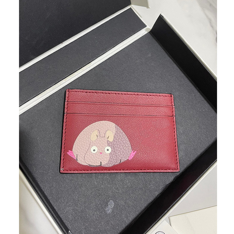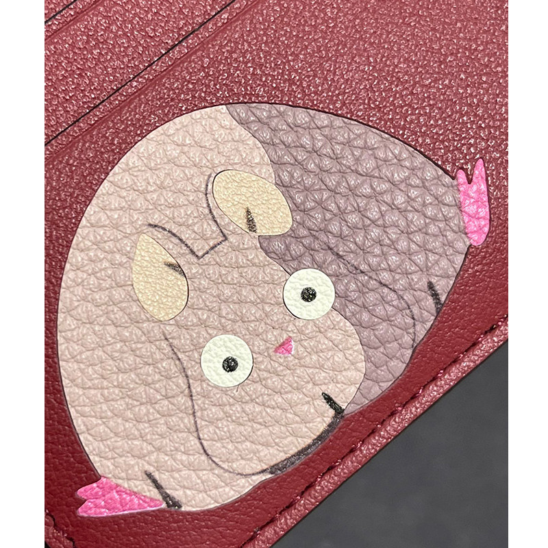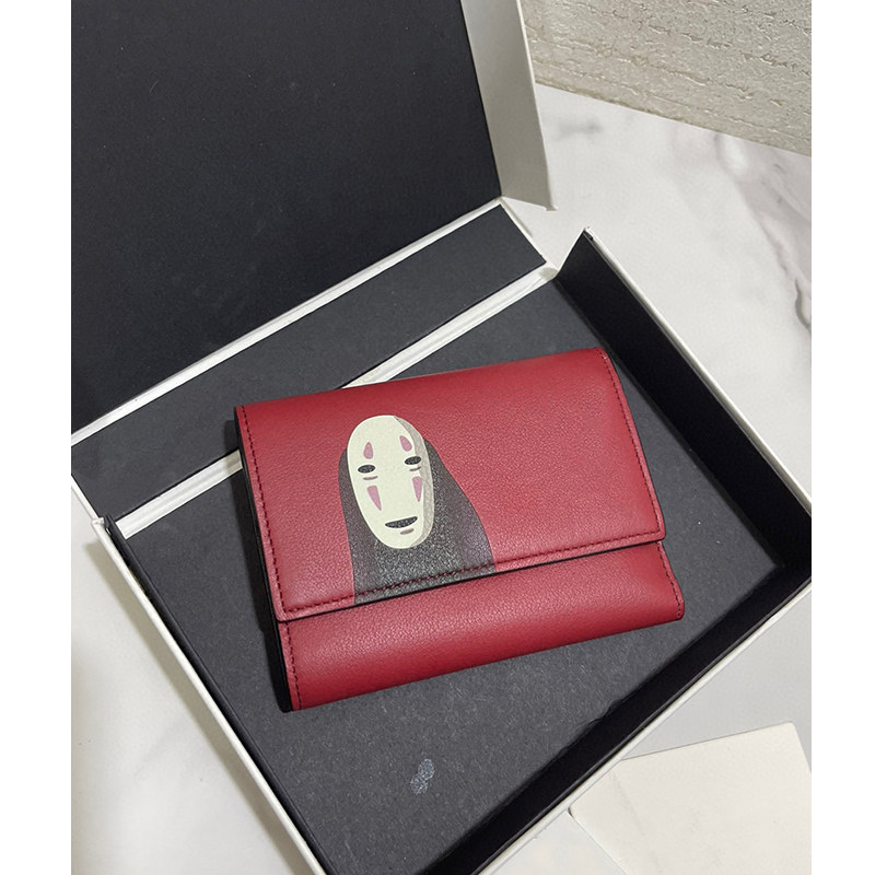 New Spirited Away Co-branded Red Leather Color Matching Leather Faceless Men's Zipper Card Holder Wallet Coin Purse