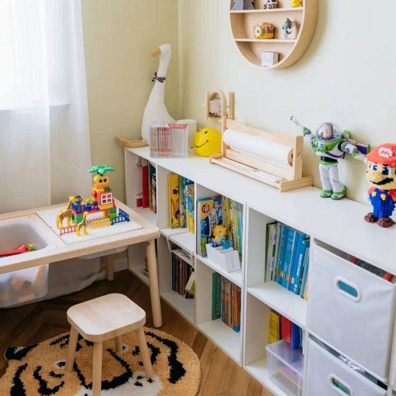 Minimalist plaid cabinet Living room bookcase children's bookshelves Shelves Shelves Toys Contained Solid Wood Dwarf Cabinets 8 Octaobao-Taobao