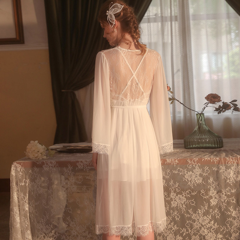 White one-piece (sling nightdress) White one-piece (robe belt) White 2-piece set (robe nightdress)