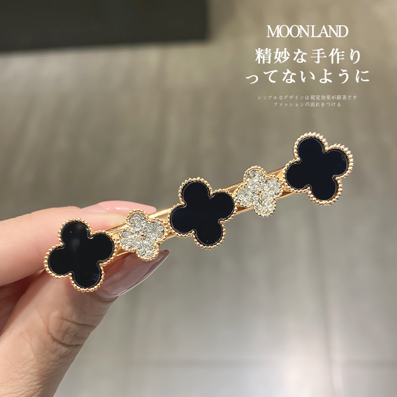Broken hairpin female Korean temperament rhinestone four-leaf clover duckbill clip back head clip side bangs clip hairpin headdress