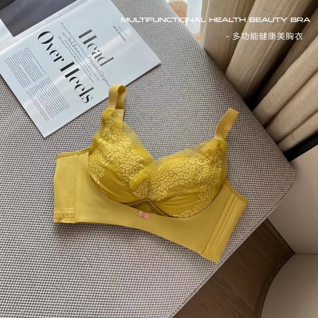 JM midvein multifunctional healthy beauty bra without steel ring bra lace gathered latex pull comfortable anti-sagging women