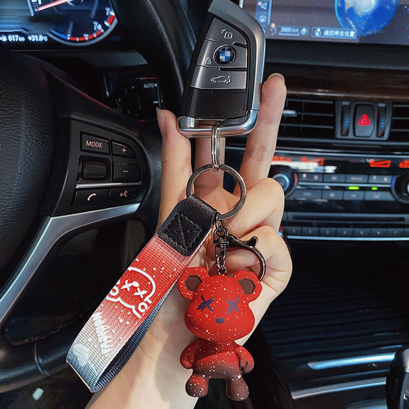 Chameleon Bear Key Chain Exquisite Car Key Ornament Net Red Bear Men and Women School Bag Pendant Key Chain#