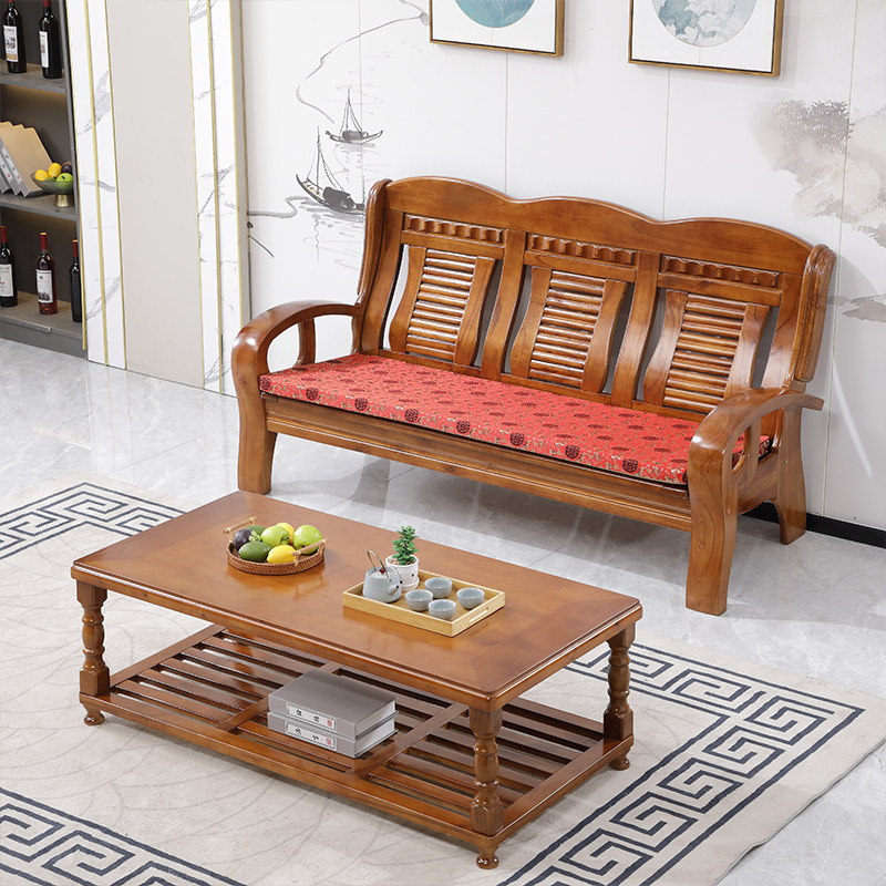 New Chinese style all solid wood sofa small apartment living room wooden furniture combination set economical rural wooden sofa