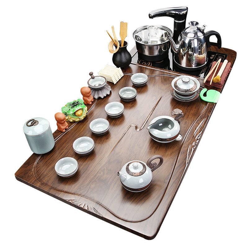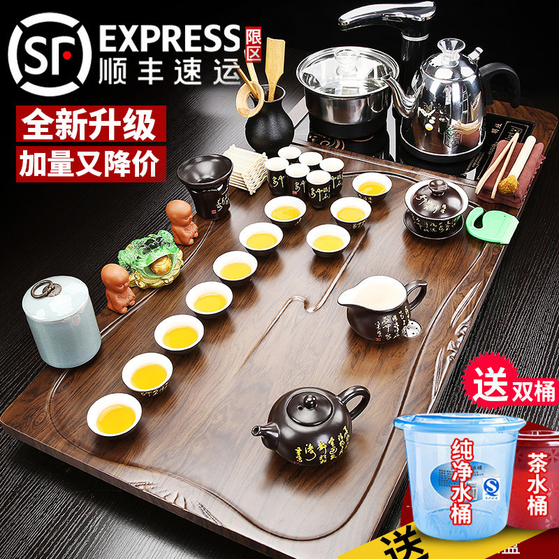 Qin Yikung fu tea suit home living room light extravagant and high-end integrated fully automatic induction cooker solid wood tea tray tea table-Taobao