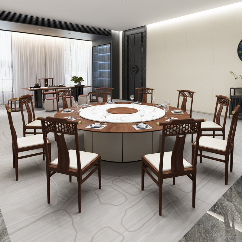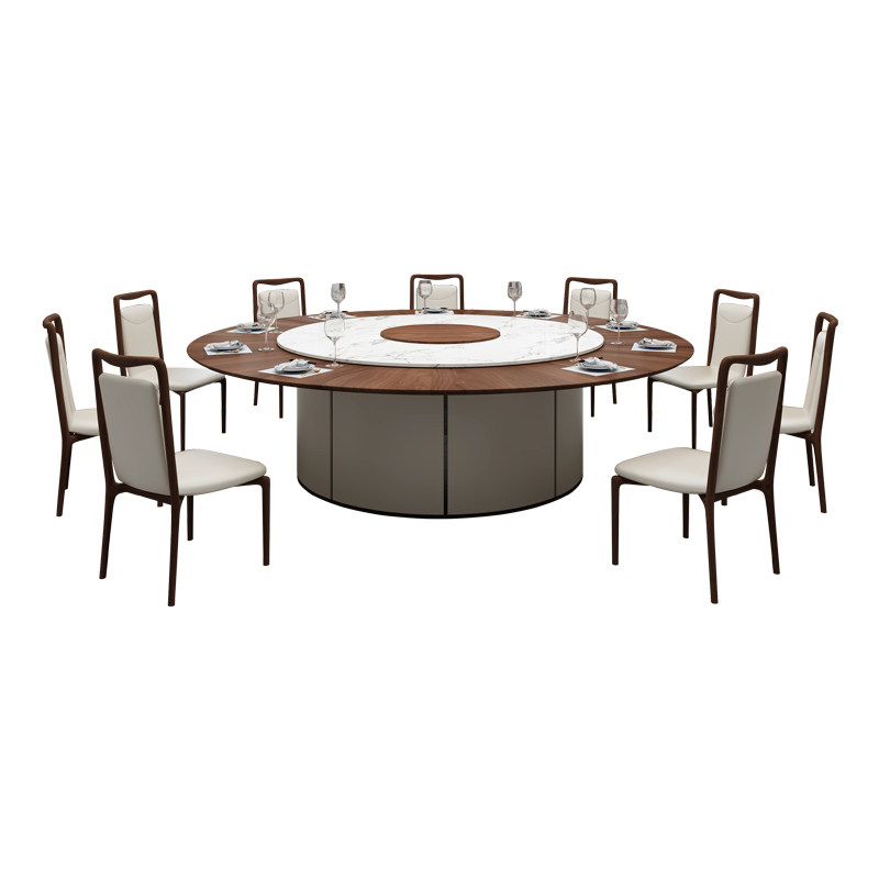 New Chinese restaurant hotel dining table large round table 30 people electric rotating marble round table and chair combination hot pot table