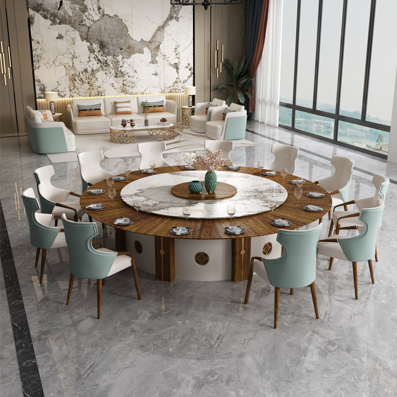 The hotel electric table big round table 18 people dining table New Chinese solid wooden plate 2 meters dining table round table