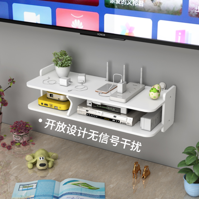 Set-top box rack wall-free punch-free living room dormitory cat wifi wall-mounted router to place storage box bracket