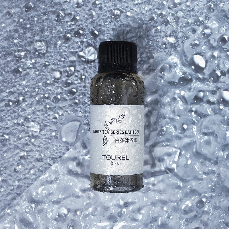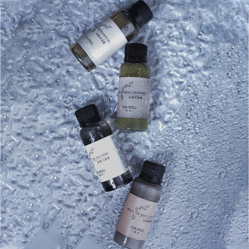 1 bottle of white tea shower gel, 4 bottles of white tea shampoo, 4 bottles of white tea conditioner, 4 bottles of white tea body lotion, 4 bottles of white tea shower gel