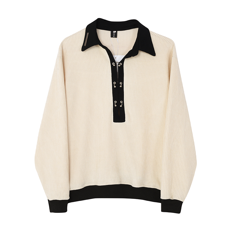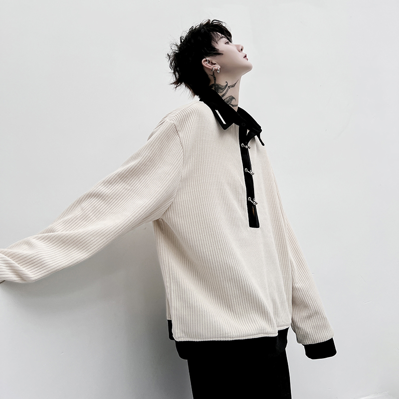 Niche high-end lapel long-sleeved T-shirt men's loose ins net red ruffian handsome top spring and autumn tide brand hit color polo shirt