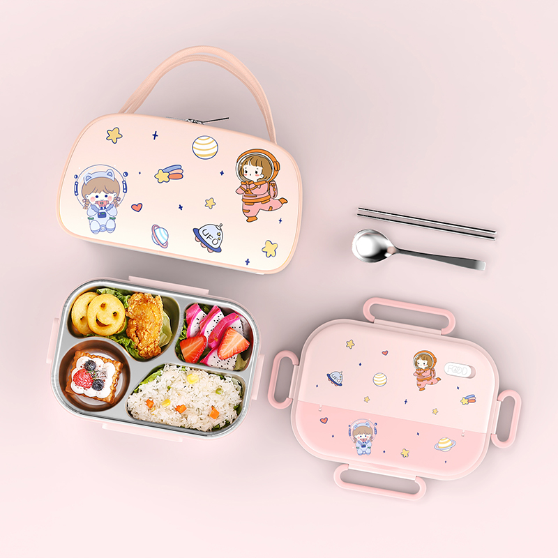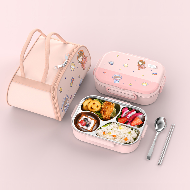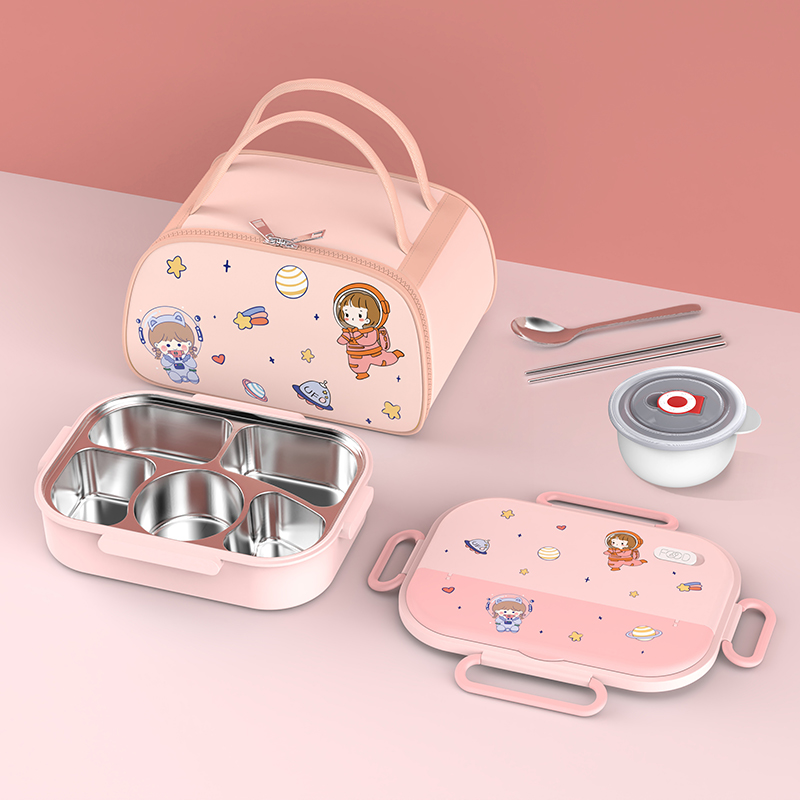 ✅(Collection plus purchase-priority shipping) Back to 5 ¥ ⭐hot pins (316 antibacterial) pink four-grid cosmonauts bag (send a soup bowl cutlery) (common 316) pink four-lattice IAF