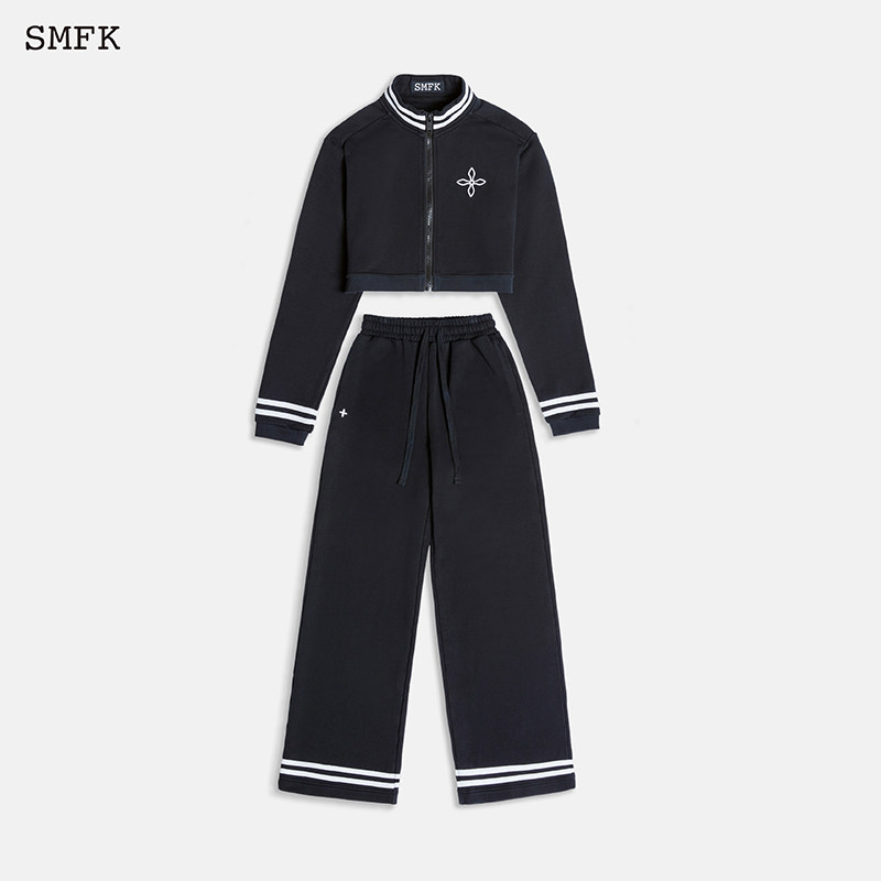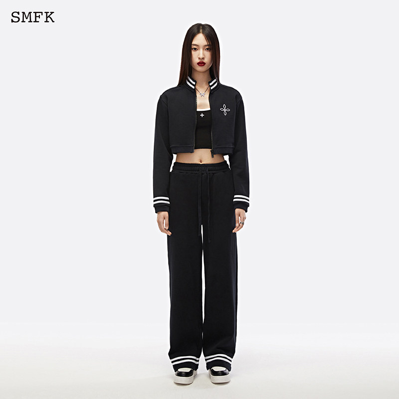 SMFK night flower retro campus suit USP10B W double striped casual sport short jacket wide-leg pants-Taobao