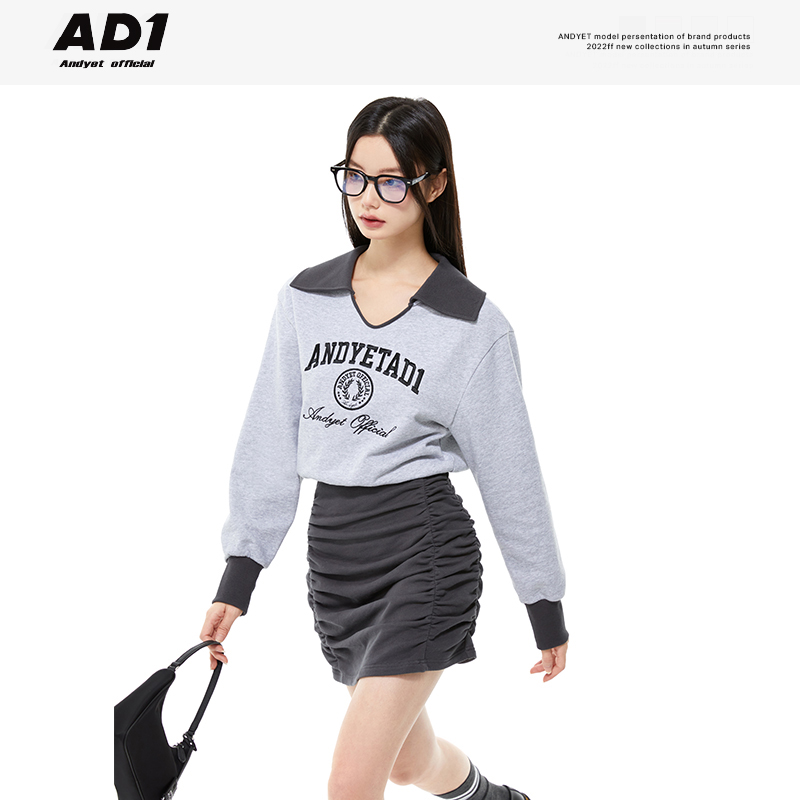 ANDYET AD1 22AW Original POLO collar pleated design sweater dress autumn waist slimming dress