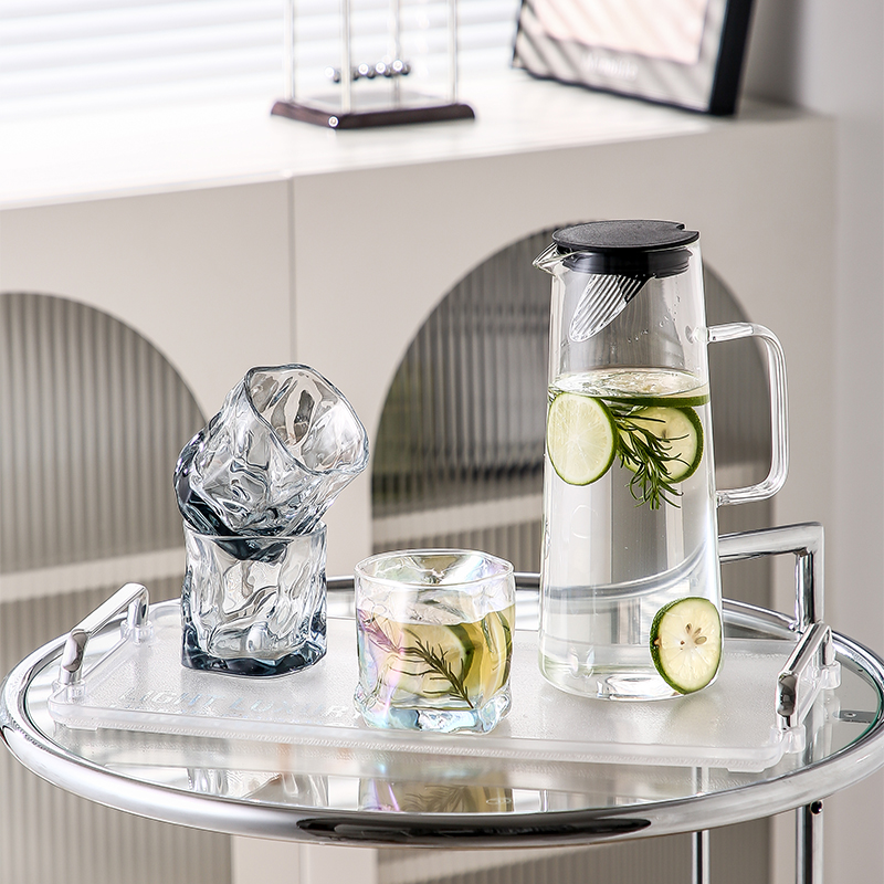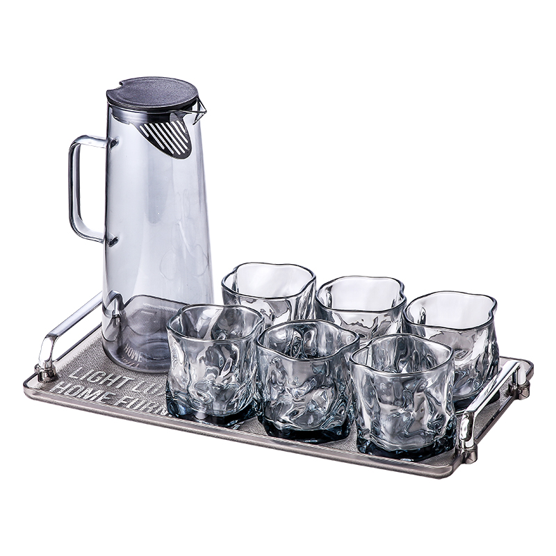 8-piece set of transparent glass cold kettles 8-piece set of soot glass cold kettles - mixed color twisting cups 6-piece set of soot glass cold kettles - mixed color twisting cups