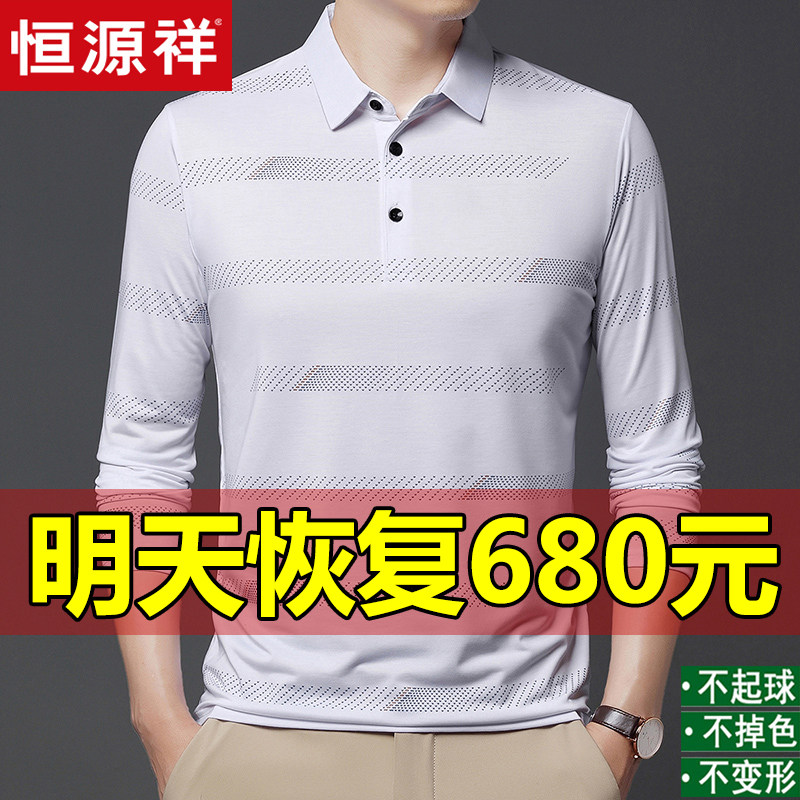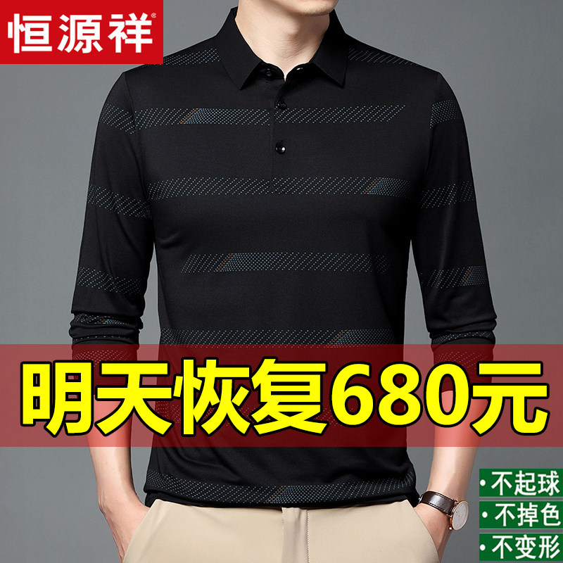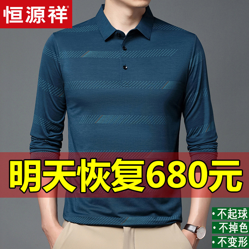 New Hengyuan Xiang Men's long - sleeved T - shirt 100 % silk business leisure outside wearing anti - wrinkle middle - aged coat
