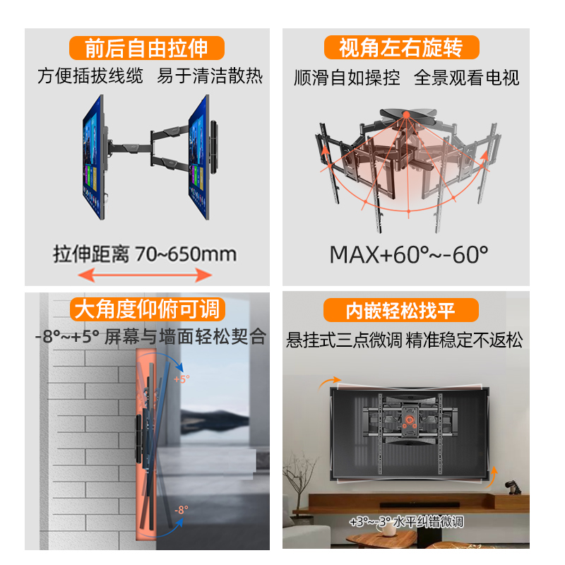 Apply 32-65 inch TV load bearing 45KG Applicable 37-80 inch TV load bearing 55KG
