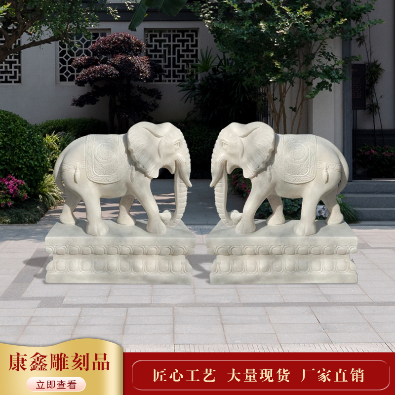 Han Baiyu's total height 30 cm pair of natural Han white jade 30 cm pair Gods in place delicate elephant Han white jade total height 40 cm pair Han white jade total height 50 cm pair a grade Han white jade 60