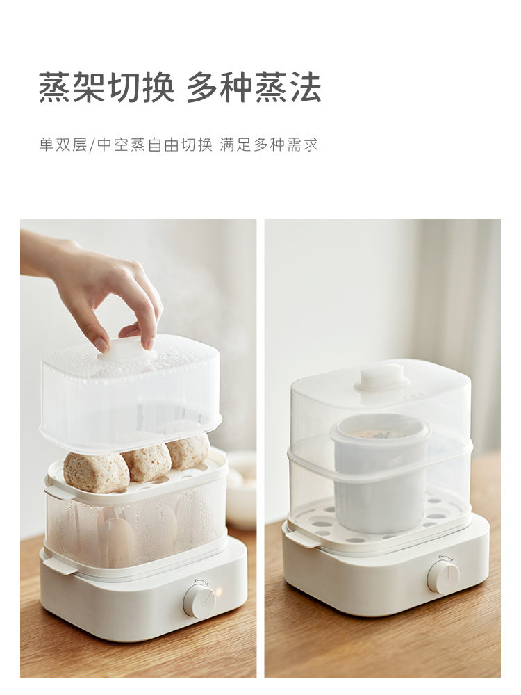 Olayks Mini-boiled Egg Steam Household Multi-function Small Double-deck Breakfast Cooked Egg Artisant Dormitory
