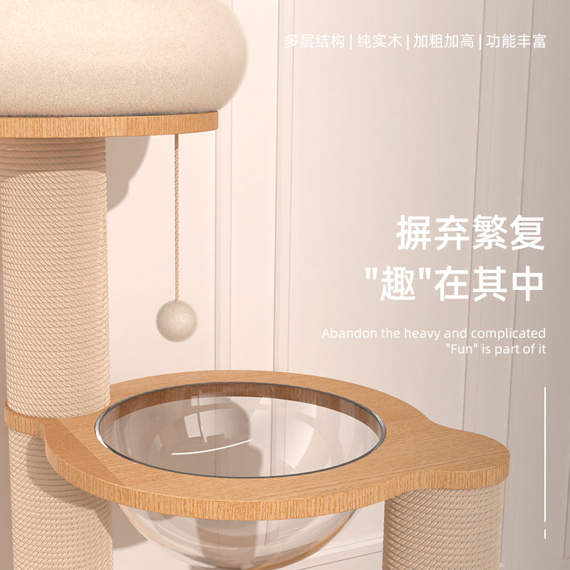 Solid Wood Cat Climbing Cat Cowl Cat Tree Integrated Space Cabin Sword Hemp White Cat Shelf Cat Grip Large Luxury not occupying the area-Taobao