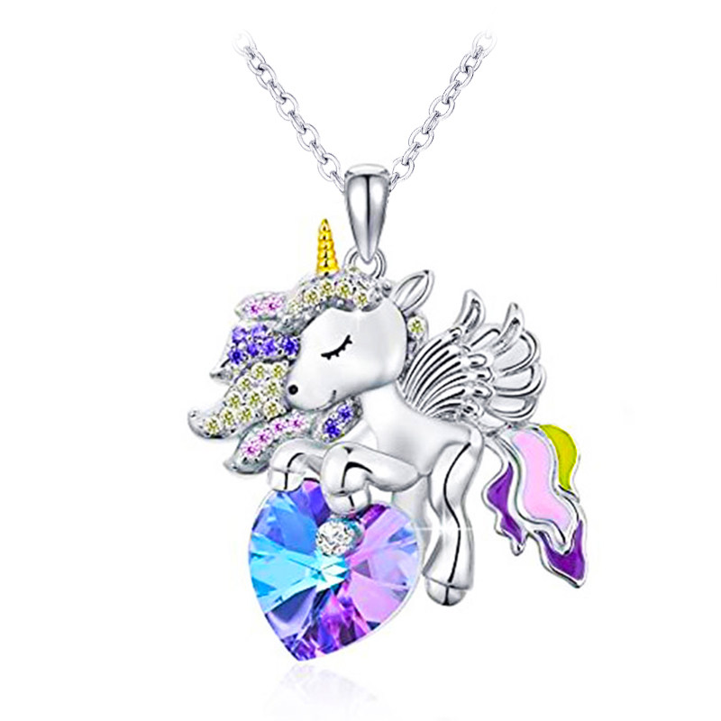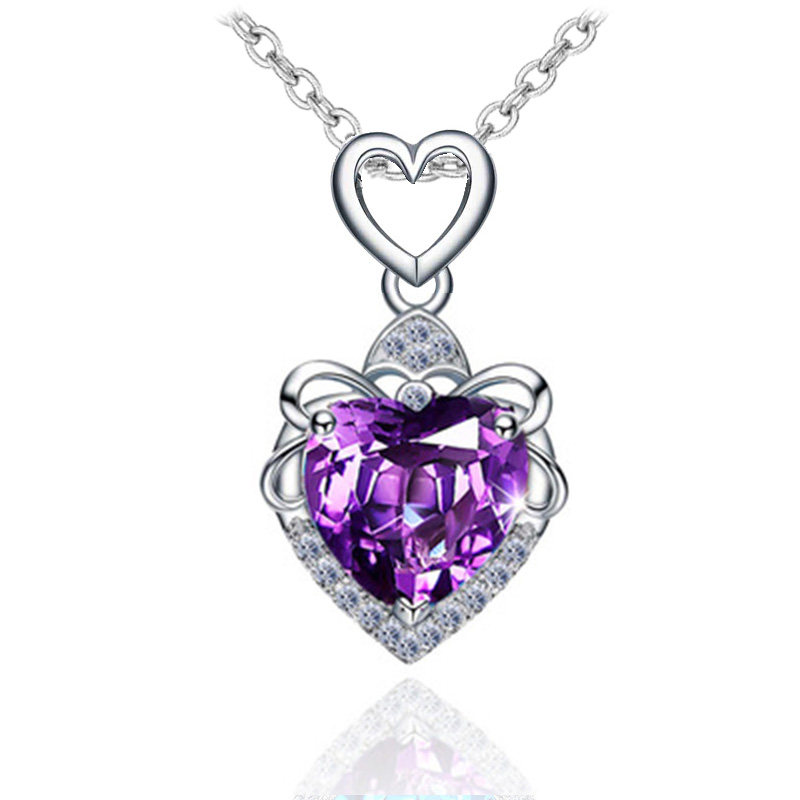 Children Crystal Gem Necklace Girl Child Little Baby Heart-shaped Pendant Little Girl Princess Kid Pink Accessories-Taobao