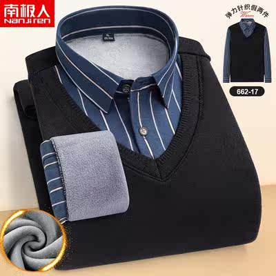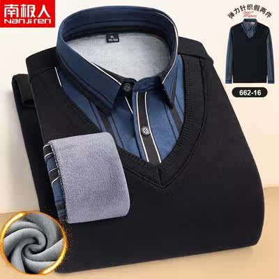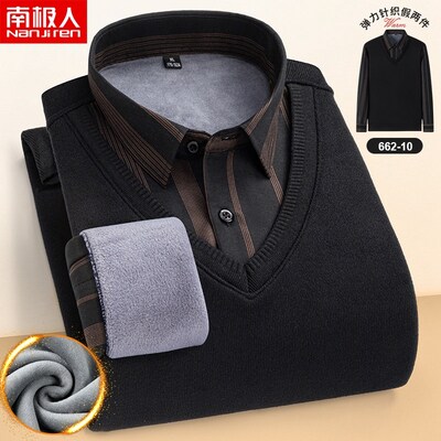 Nanjiren 2022 winter plus velvet thick daddy long-sleeved men's thermal underwear fake two-piece men's collar shirt