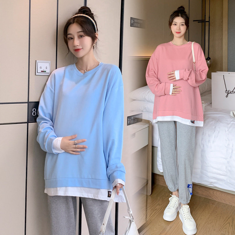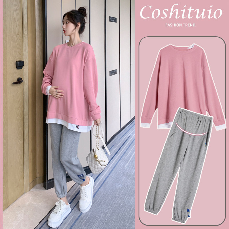The Jing Unicorn Dress Fall 2023 New Suit Long Sleeve Blouse Pregnant Woman Pants Two Sets Trendy Loose Autumn Clothes-Taobao