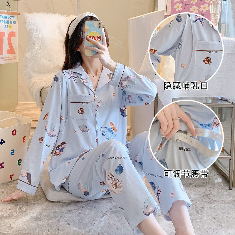 2022 new confinement clothes, thin section nursing pajamas, pregnant women, pregnant women, maternity, spring and summer nursing home clothes