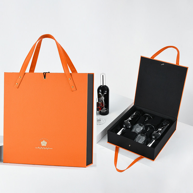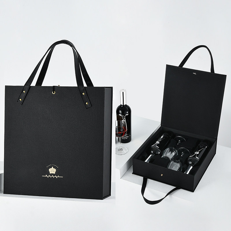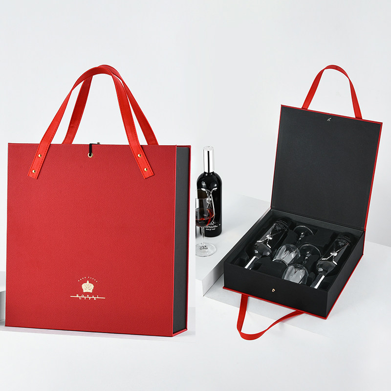 Upscale red wine Packaging gift box Double Clothing Leather Case Wine Box With Mug Gift Box Customizable Wine Glass Box-Taobao