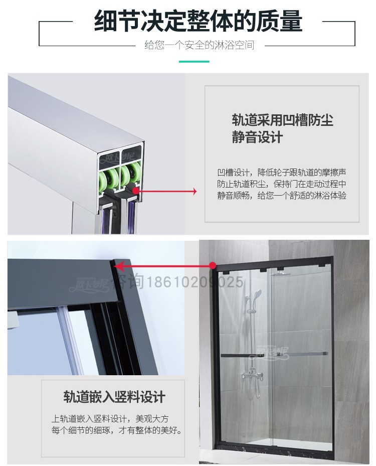 Bathroom dry and wet separation partition bathroom sliding door rain sliding door overall glass inline shower room bath screen